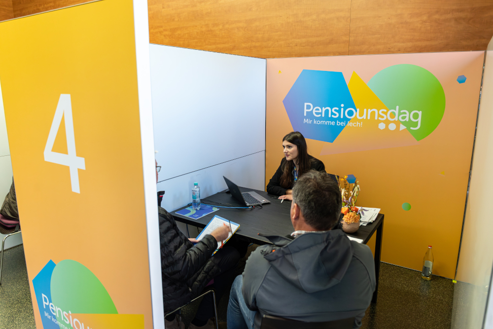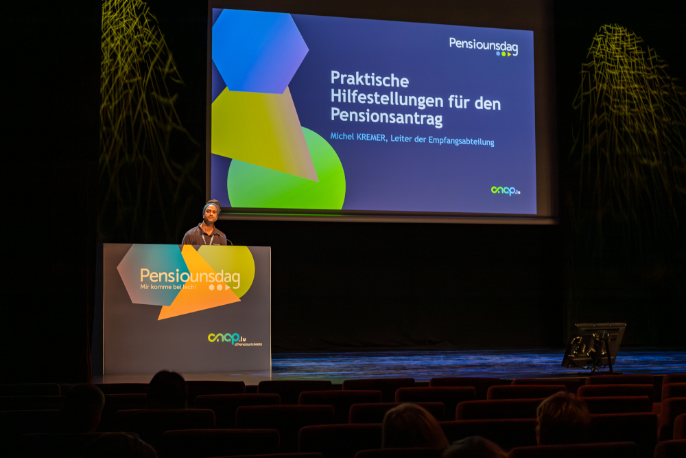 In den Präsentationen informierte die CNAP die Besucher über ihre Leistungen und gab praktische Tipps für die Beantragung einer Pension. Externe Präsentationen wurden von GERO zum Übergang in den Ruhestand, von der Zentralstelle der Sozialversicherungen (CCSS) zur freiwilligen Pensionsversicherung sowie von der ACA zur dritten Säule des Pensionssystems gehalten.